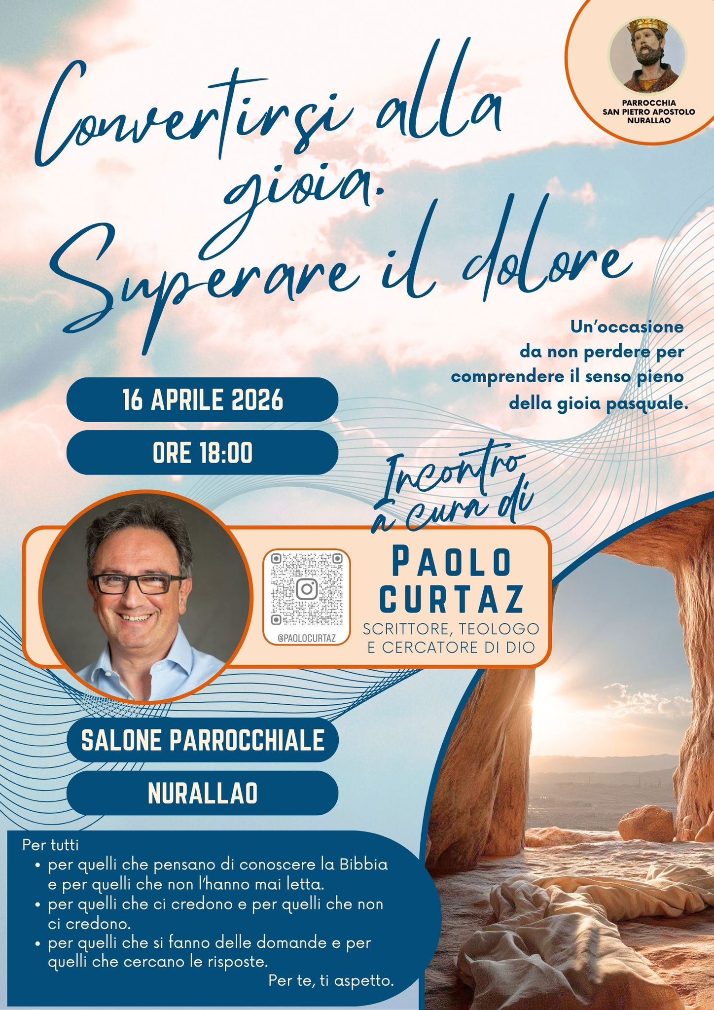 Il comune e la parrocchia di Nurallao vi invitano a: Convertirsi alla gioia, Superare il dolore; Clicca qui per ulteriori informazioni